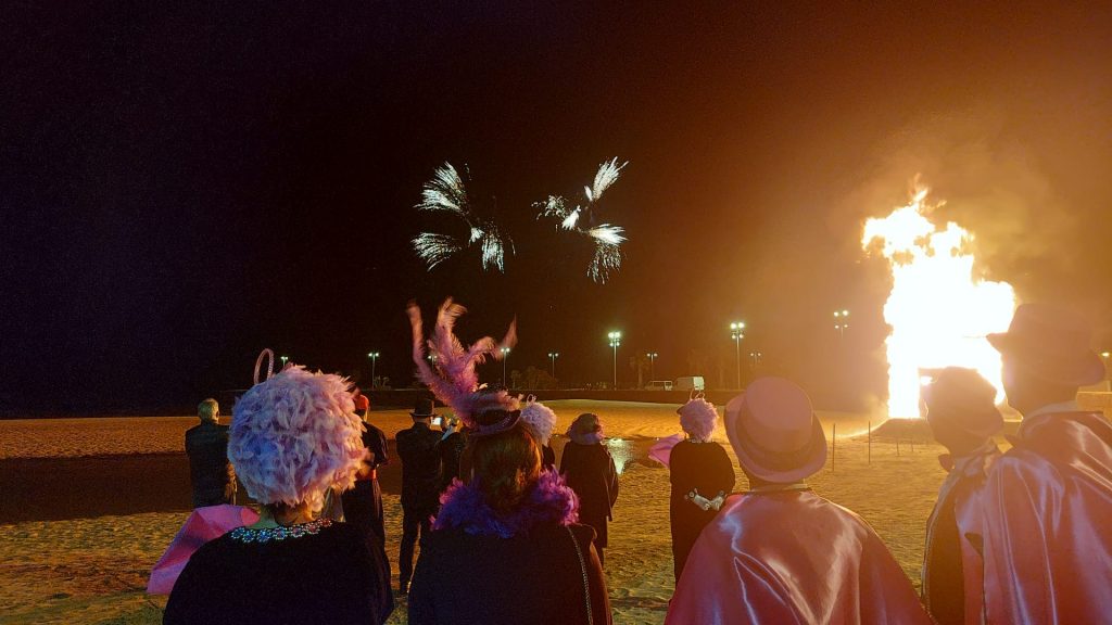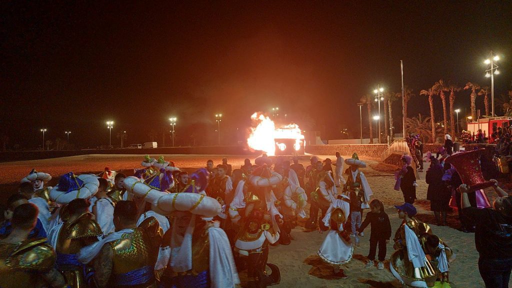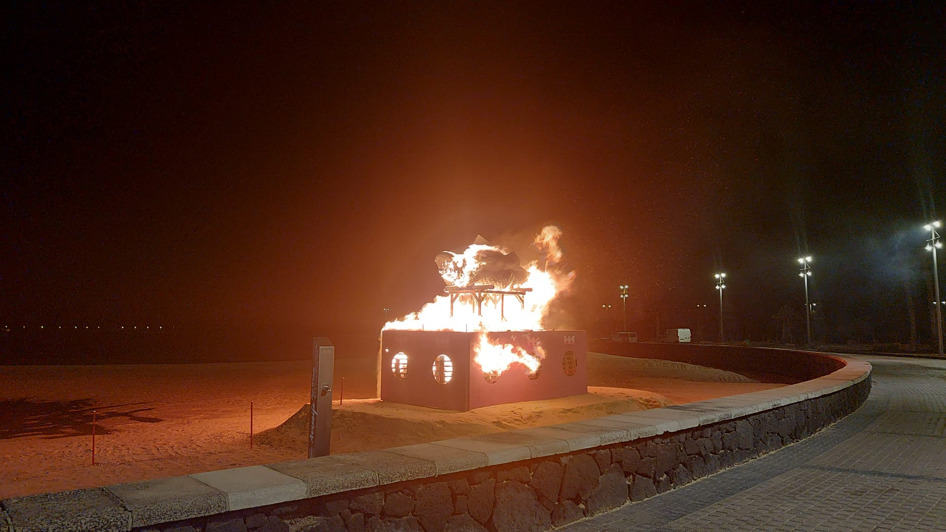Una vez que el desfile llegó a su fin, los participantes se dirigieron a la playa de El Reducto donde tuvo lugar su quema en una gran hoguera, constituyendo un espectáculo impresionante que atrajo a numerosos espectadores, tanto locales foráneos, que eligieron visitar la ciudad durante el Carnaval para poder presenciar la celebración y disfrutar de la oportunidad de conocer la cultura local y la historia de la tercera capital de Canarias.