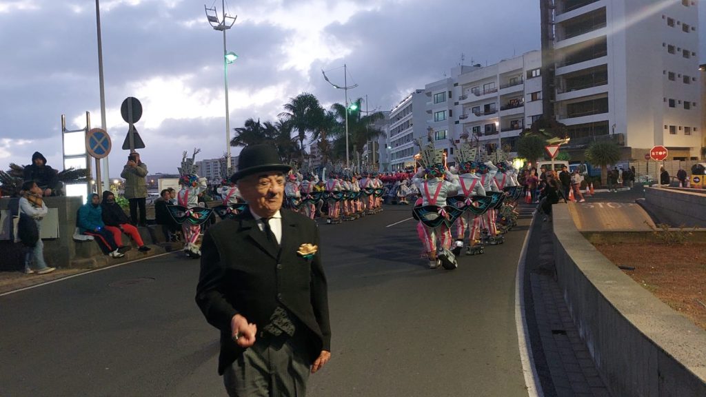 A medida que avanzaba la tarde, el desfile fue recorriendo las avenidas Coll, La Marina y Fred Olsen, al son de la música, componente esencial de la fiesta, con la que los diferentes grupos del carnaval que participaron de la comitiva –murgas, comparsas y batucadas– crearon un ambiente de alegría y diversión difícil de describir. Y junto a ellos, miles de participantes –unos diez mil, aproximadamente– ataviados con los disfraces habituales y maquillajes elaborados, creando una atmósfera festiva y alegre.