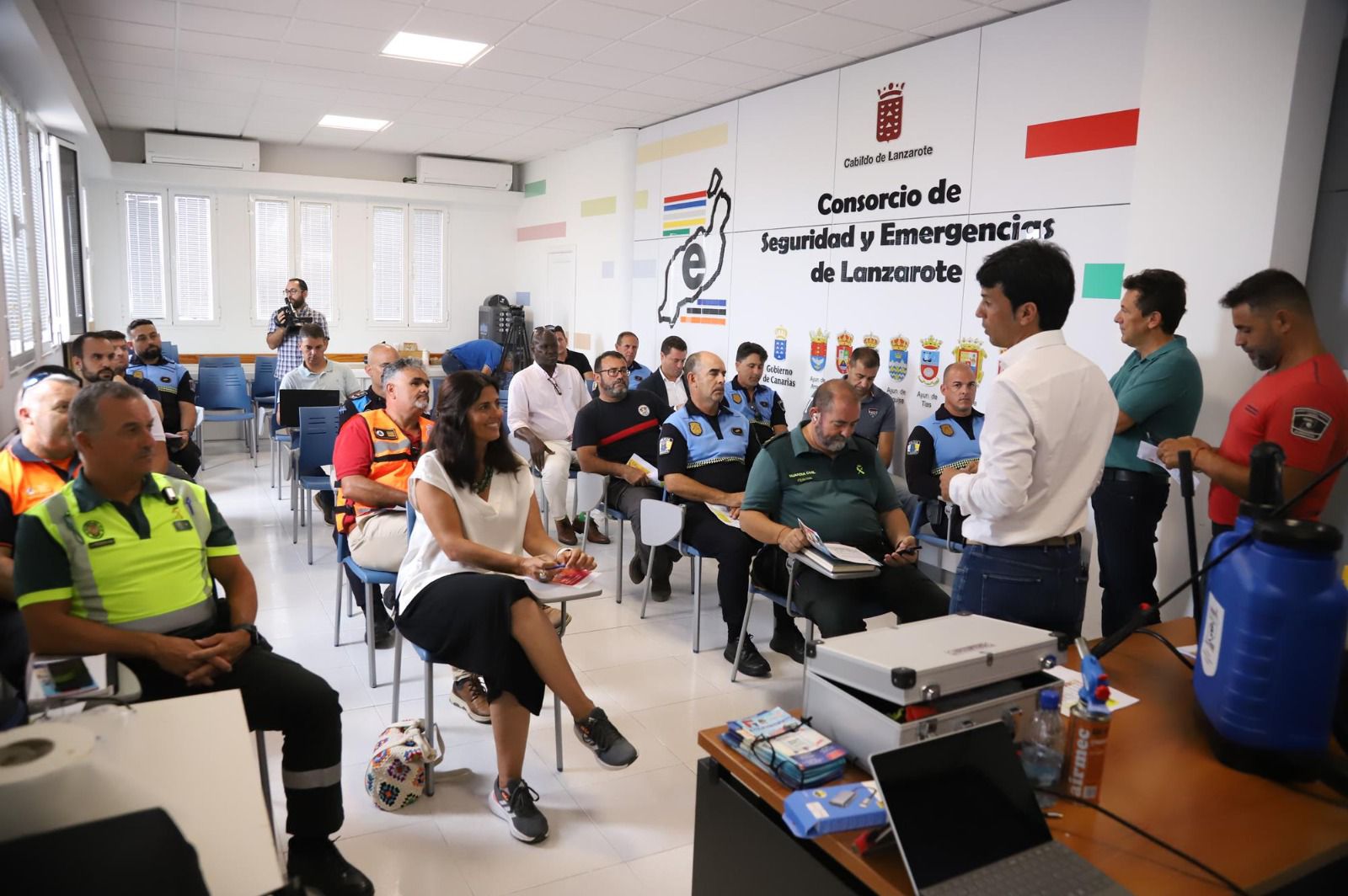 El acto, que tuvo lugar en el Salón Polivalente del Consorcio, contó con la presencia del presidente de la entidad, Marcos Bergaz, y de diversos miembros del Cuerpo de Bomberos de la Isla, así como de representantes de los siete ayuntamientos de Lanzarote, de las concejalías de Seguridad y Emergencias y de Cuerpos y Fuerzas de Seguridad del Estado de la Isla.