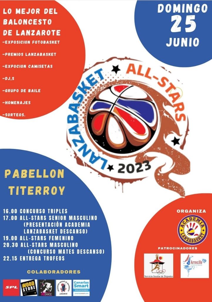 Un año más y, tras finalizar la temporada de baloncesto de los diferentes equipos de Lanzarote, el Pabellón de Titerroy acogerá este domingo, 25 de junio, el All Stars 2023, organizado por Lanzabasket con la colaboración de Lanzarote Deportes, Lanzarote Guapea y Deportes Arrecife.