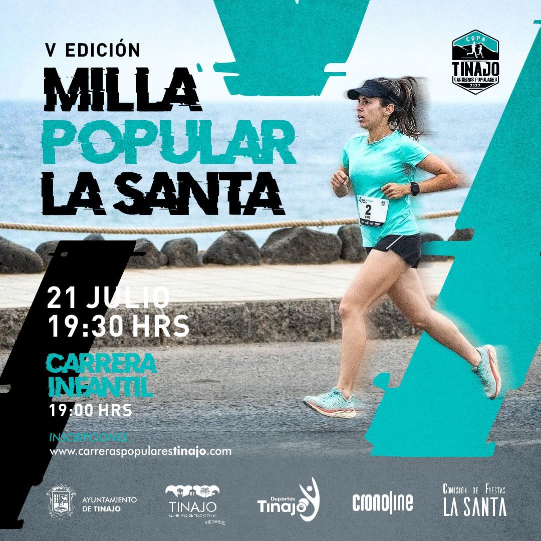 Con la temporada veraniega llegan numerosas pruebas deportivas al municipio de Tinajo. Una que ha preparado con mimo el Ayuntamiento de Tinajo a través de la Concejalía de Deportes es la quinta edición de la Milla Popular de La Santa y ya tiene abierto el periodo de inscripciones.