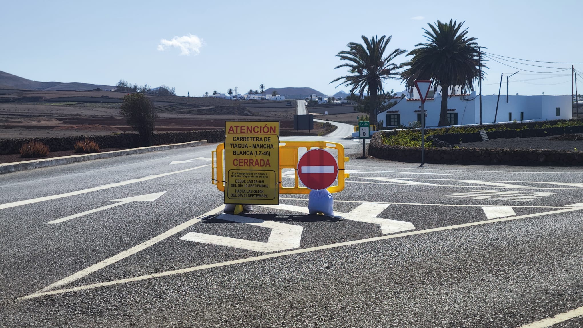 Desde P.K. 7+600 al P.K. 8+590: Se cerrará al tráfico el carril sentido a Arrecife desde la rotonda de Mozaga hasta la rotonda del Monumento al Campesino,m desviando el tráfico por Mozaga, desde las 00:00 horas hasta las 22:00 horas del día 09/09/23.