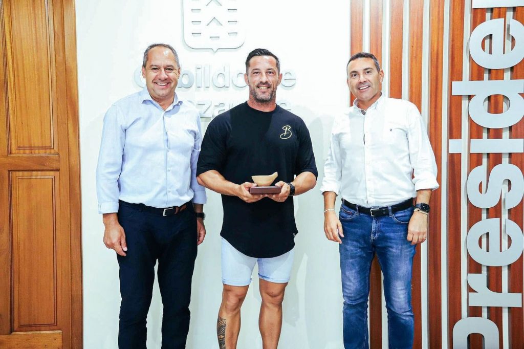 El presidente insular, Oswaldo Betancort, y el consejero de Deportes, Juan Monzón, fueron los encargados de felicitar personalmente al atleta lanzaroteño por su logro