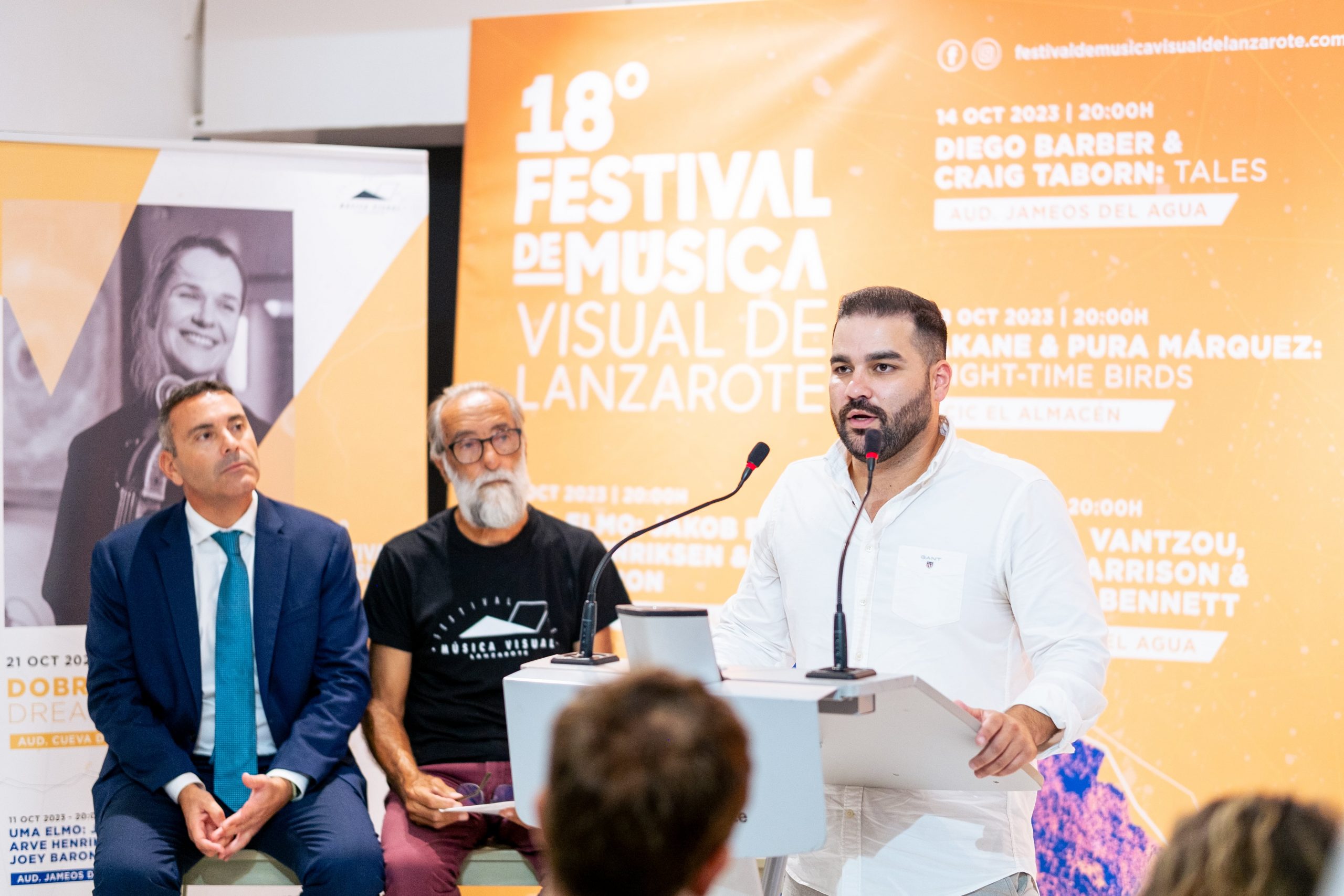 El Cabildo de Lanzarote y La Graciosa, presidido por Oswaldo Betancort, presentó esta mañana en el CIC El Almacén el 18º Festival de Música Visual de Lanzarote, un evento artístico de renombre internacional que fusiona la vanguardia musical con diversos lenguajes artísticos en armonía con las peculiares características y singularidades de los espacios escénicos naturales de la isla de Lanzarote.