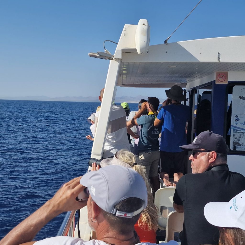 Durante el avistamiento el grupo mantuvo su rumbo y trayectoria, lo que dificultó su identificación, hasta que decidieron acercarse a la proa del barco y se pudo confirmar la especie y citarse por primera vez en aguas de la costa sureste de Lanzarote.