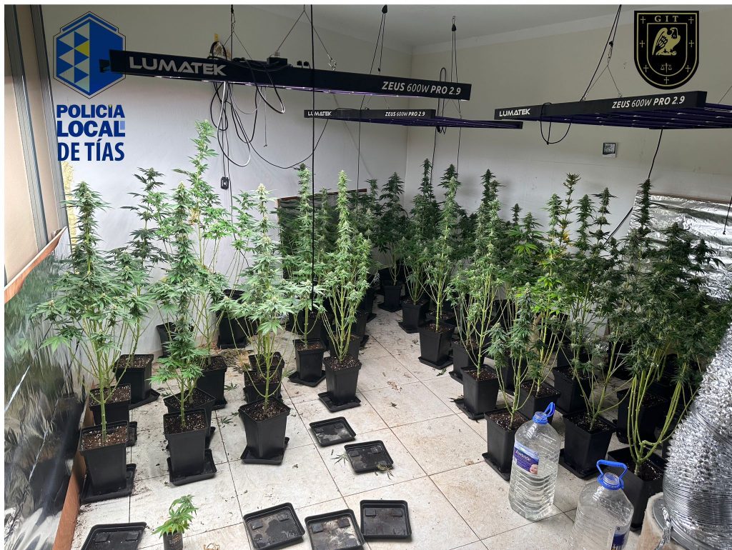 La Jefatura de la Policía Local de Tías informa de esta operación, denominada Operación Halloween al ejecutarse el pasado día 31 de octubre, indicando que se pudieron incautar alrededor de 70 plantas de cannabis sativa con un peso estimado de 15,35 kilogramos y varios envoltorios de hachís preparados para su venta.