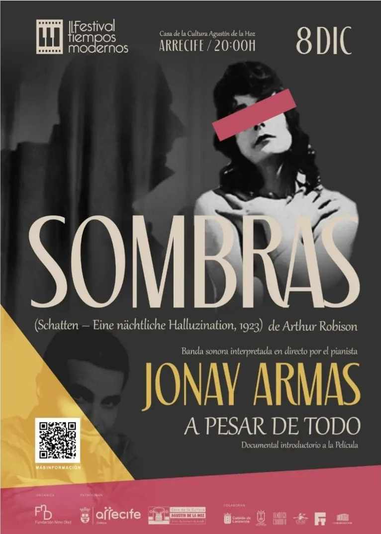 Con entrada libre, comenzará con la emisión previa del documental ‘A pesar de todo’ (1976) perteneciente al archivo de la Filmoteca Canaria y a continuación se proyectará la película ‘Sombras’ (Alemania, 1923) de Arthur Robinson que contará con banda sonora en directo a cargo del pianista Jonay Armas.
