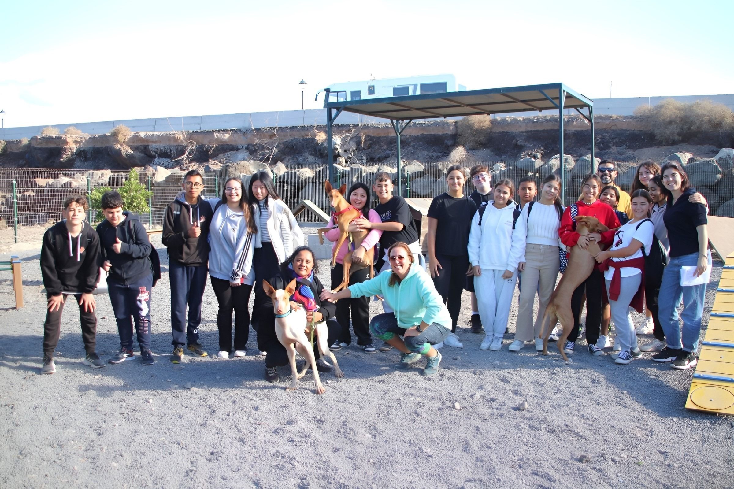 Diecisiete escolares de 1ero. de la ESO del CEO Playa Blanca visitaron este martes las instalaciones del Centro de Acogida de Animales de Yaiza para conocer de cerca cómo viven mascotas que fueron abandonadas o maltratadas por sus propietarios, que ahora disfrutan de los cuidados municipales, con la inestimable colaboración del voluntariado de la protectora Doggys del Sur, mientras encuentran un hogar de adopción.
