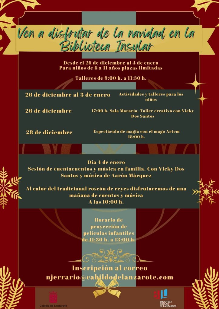 El Cabildo de Lanzarote, que preside Oswaldo Betancort, organiza una serie de actividades, entre el 26 de diciembre y el 4 de enero, para celebrar la Navidad en la Biblioteca Insular.