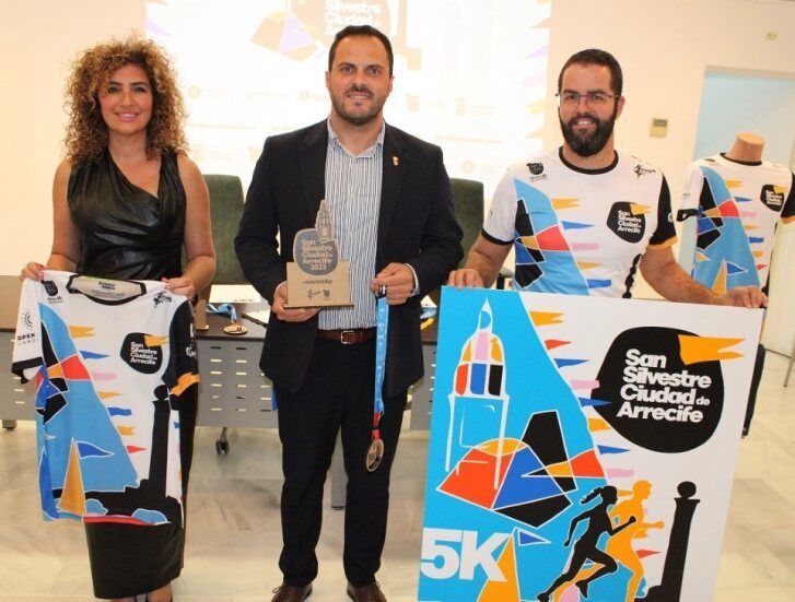 El alcalde de Arrecife, Yonathan De León, acompañado de la concejala de Turismo, Comercio y Deportes, Eli Merino, ha presentado durante la mañana de este jueves, 28 de diciembre, la carrera popular “San Silvestre Ciudad de Arrecife 2023” que tendrá lugar el próximo domingo, 31 de diciembre. La prueba tiene como cartel oficial un diseño de Manrique al que se ha unido la nueva marca del 225 aniversario de la fundación del municipio de Arrecife, y que desde ayer está conmemorando la capital de Lanzarote.