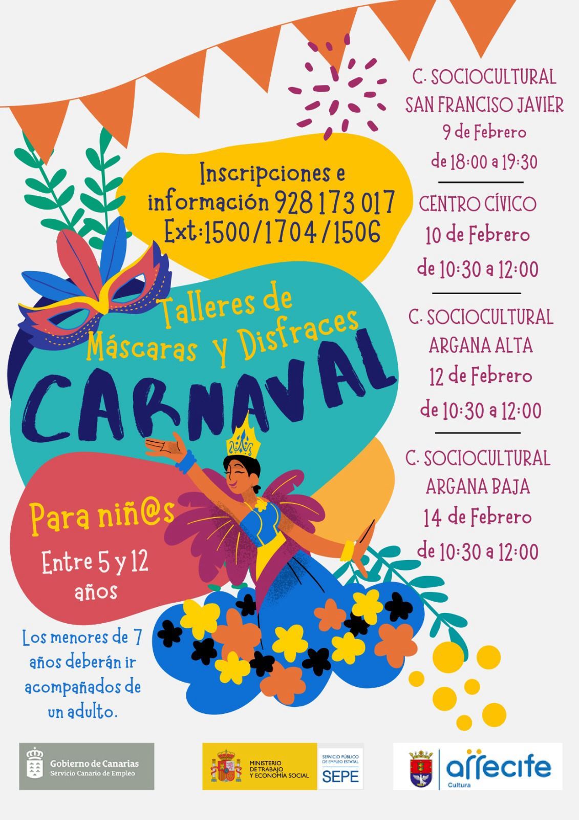 Y para contribuir a infundir el espíritu de estas fiestas entre chinijas y chinijos de cada casa, el Ayuntamiento de Arrecife que preside el alcalde Yonathan de León Machín, a través de la Concejalía de Cultura dirigida por Abigail González, organiza una serie de talleres infantiles de máscaras y disfraces en barrios del municipio.