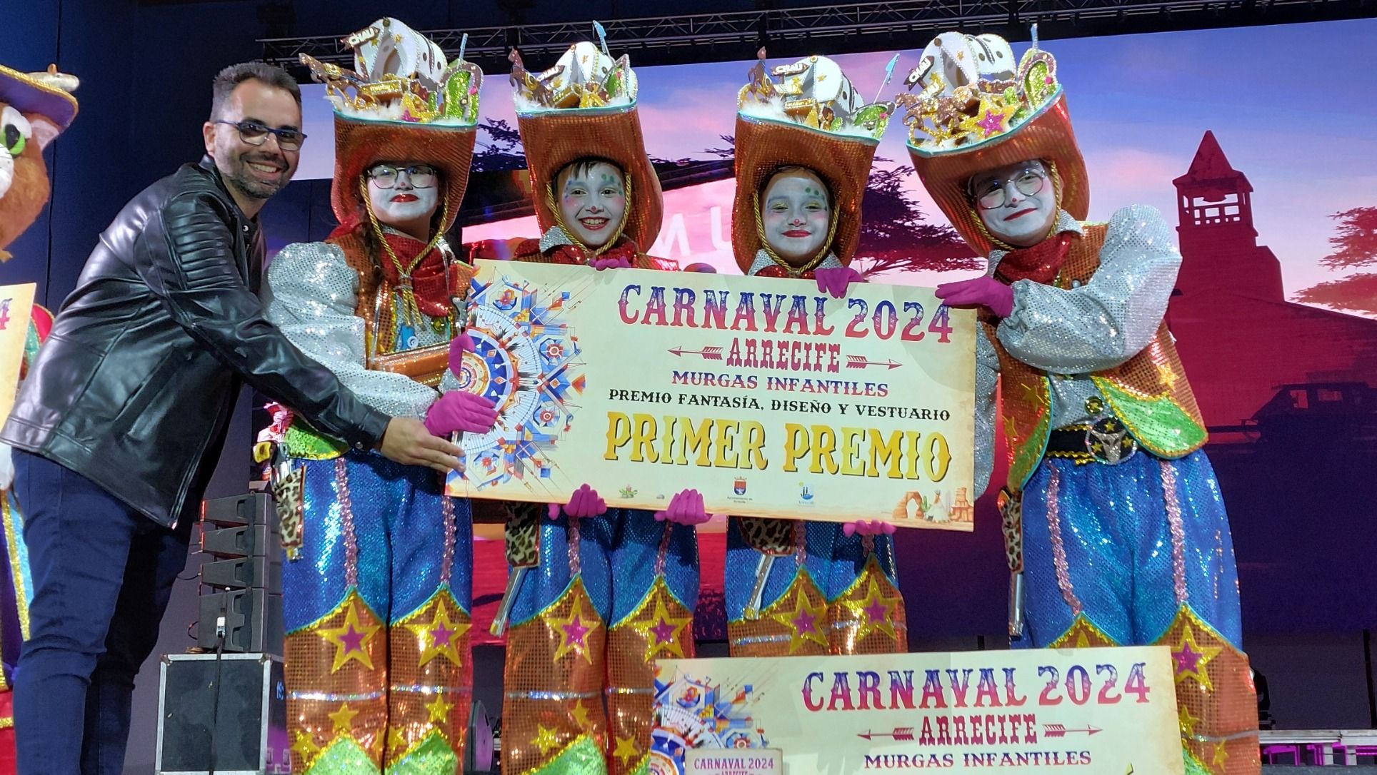 El Ayuntamiento de Arrecife, que preside el alcalde Yonathan de León, a través del Área de Festejos, dirigida por Echedey Eugenio, celebró este sábado en el nuevo Recinto Ferial, el VIII concurso de murgas infantiles del Carnaval, del que resultó ganadora la murga “Los Noveleros”, al lograr el primer premio de Interpretación, Letra y Música, además del tercer premio de Fantasía, Diseño y Vestuario y el Premio Buche.
