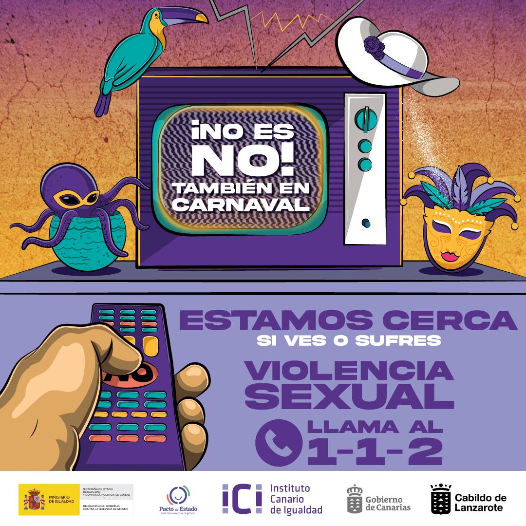Con el lema ¡No es no, también en Carnaval!, esta campaña tiene como finalidad instar a la población a actuar contra las violencias sexuales durante estas fiestas, en las que suele repuntar la incidencia de este tipo de delitos. El eslogan será traducido al inglés, francés y alemán y la cartelería irá impresa en diferentes líneas del transporte interurbano de guaguas durante los días de celebración de estas carnestolendas.