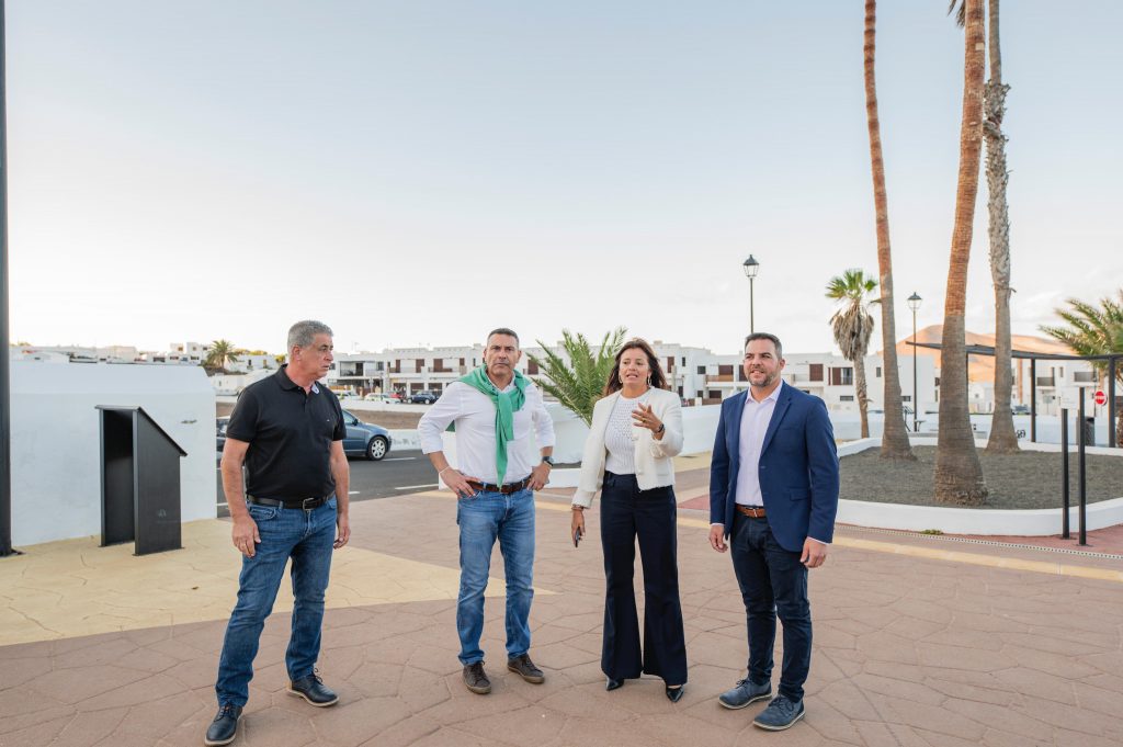 El presidente del Cabildo, Oswaldo Betancort, junto al vicepresidente y responsable de Obras Públicas, Jacobo Medina, la alcaldesa de Teguise,