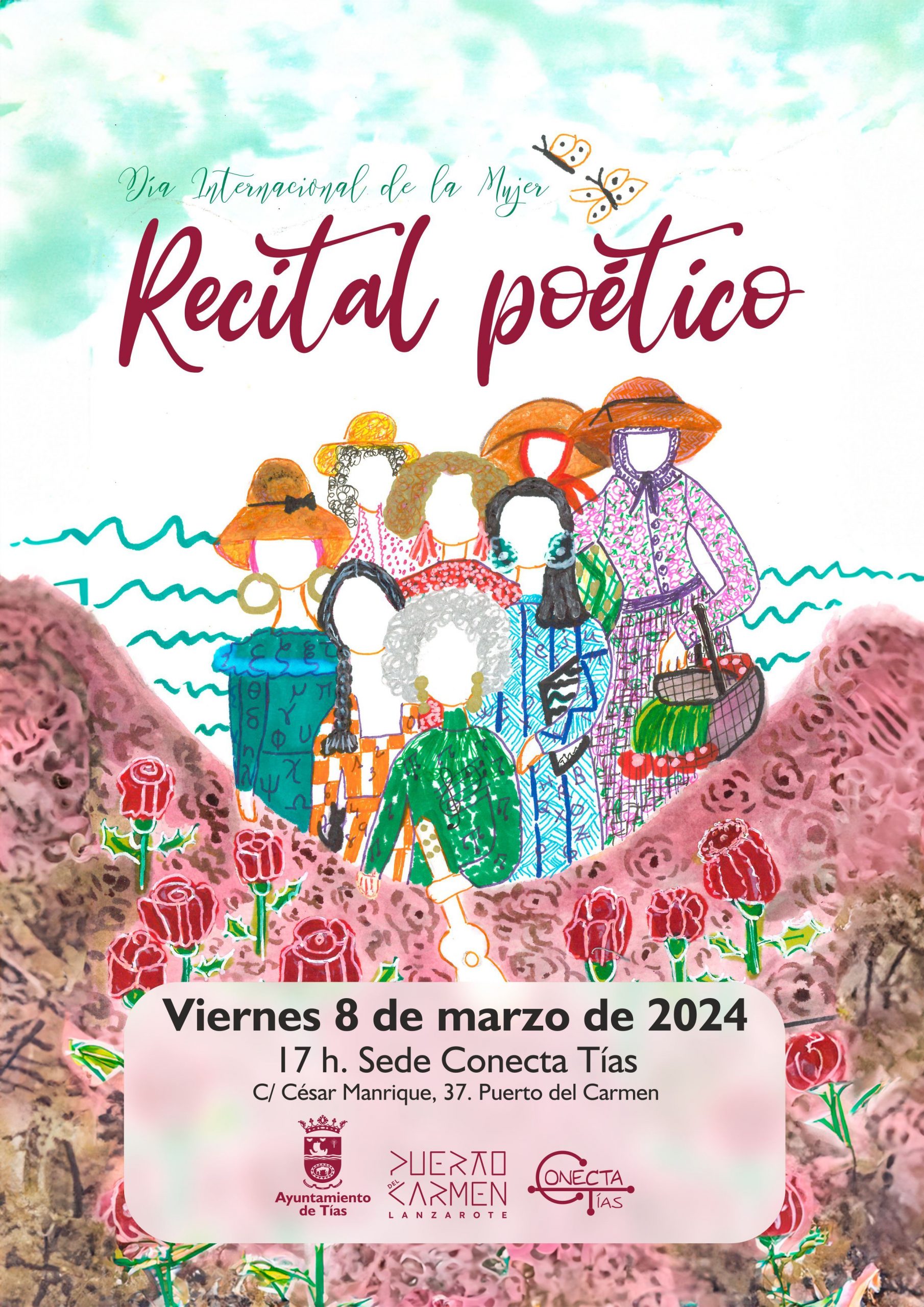 Ese mismo día, por la tarde, habrá un recital de poesía coordinado por Mercedes Minguela. Avanzamos juntas será el encuentro de poetas organizado para las 17 horas en Conecta Tías, situada en la calle César Manrique, 37. Protagonizarán el recital las poetas Mercedes Minguela, Begoña Hernández, Montse Fillol, Yolanda Ruano, Rosa Ortega y María del Mar Dávila. Intervendrán la cantante Eva Aroca, la pianista Cielo Guzmán y la artista Alice Battezzati.