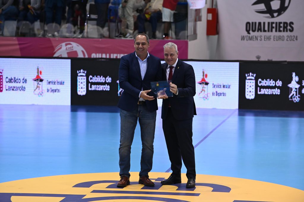 El combinado nacional superó a Macedonia del Norte (24-20) ante un pabellón de Tías repleto de seguidores El presidente del