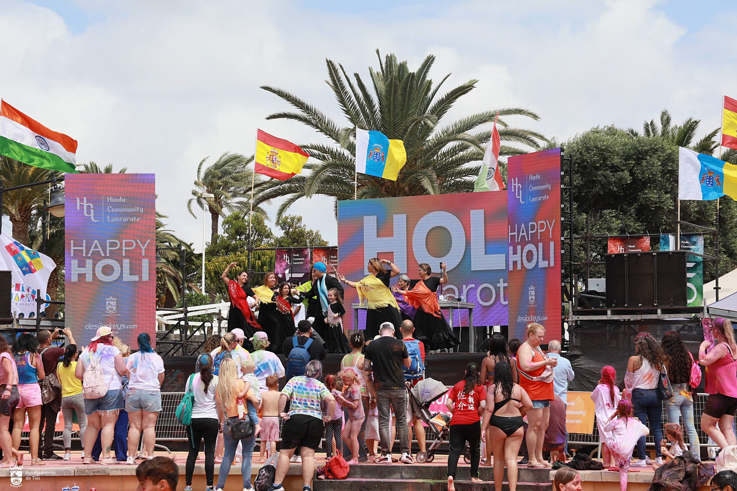 La Plaza de las Naciones se tiñó de color desde las 12:00 hasta las 20:00 horas en un alegre encuentro con la comunidad hindú de Lanzarote, que contó con participación de numeroso público, puestas en escena de escuelas de baile de diferentes disciplinas como Bollywood, bailes latinos y flamenco, fiesta de la espuma y la actuación de un joven dj de Tenerife y del dj Desi Jockeys, llegado directamente desde Manchester.