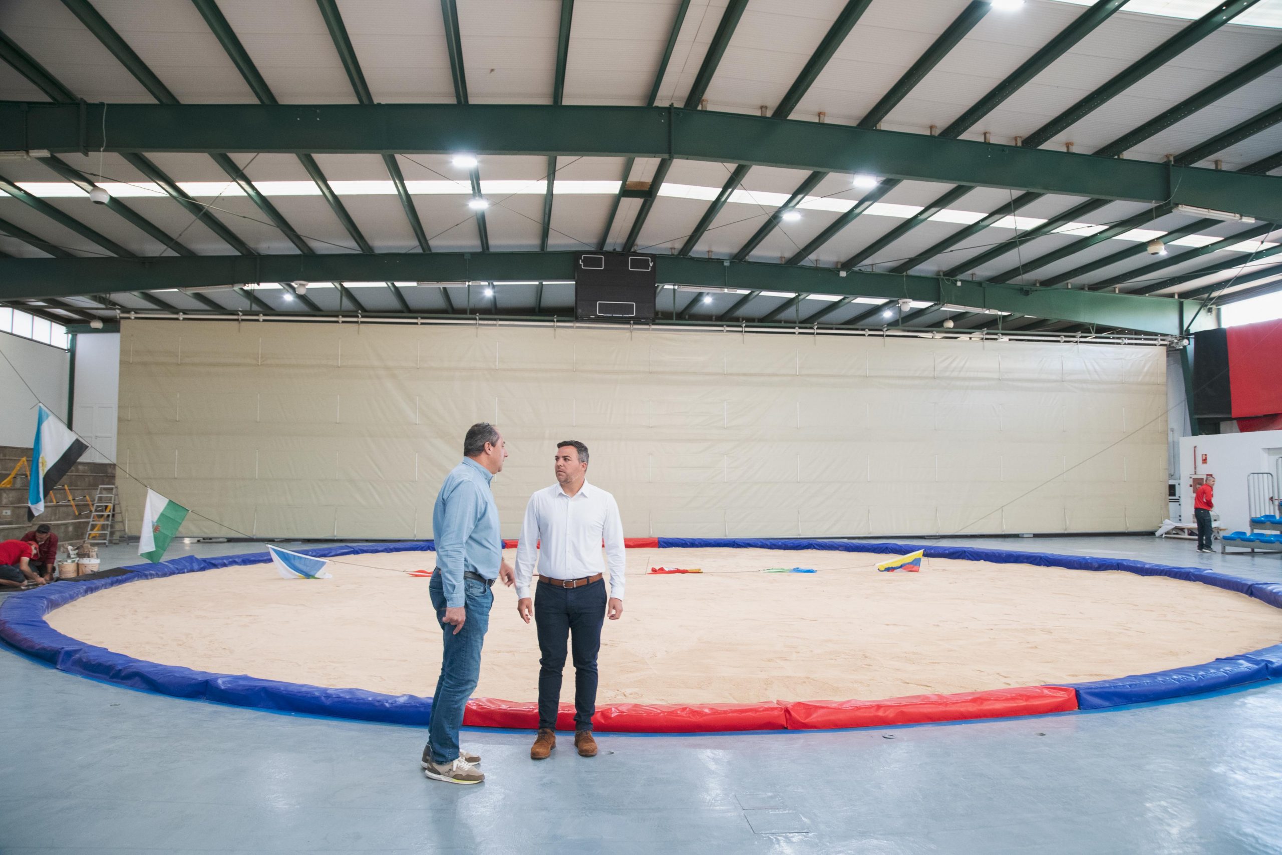 El vicepresidente y responsable de Obras Públicas, Jacobo Medina, y el consejero de Deportes insular, Juan Monzón, visitaron recientemente el recuperado terrero de lucha de la Ciudad Deportiva de Lanzarote.