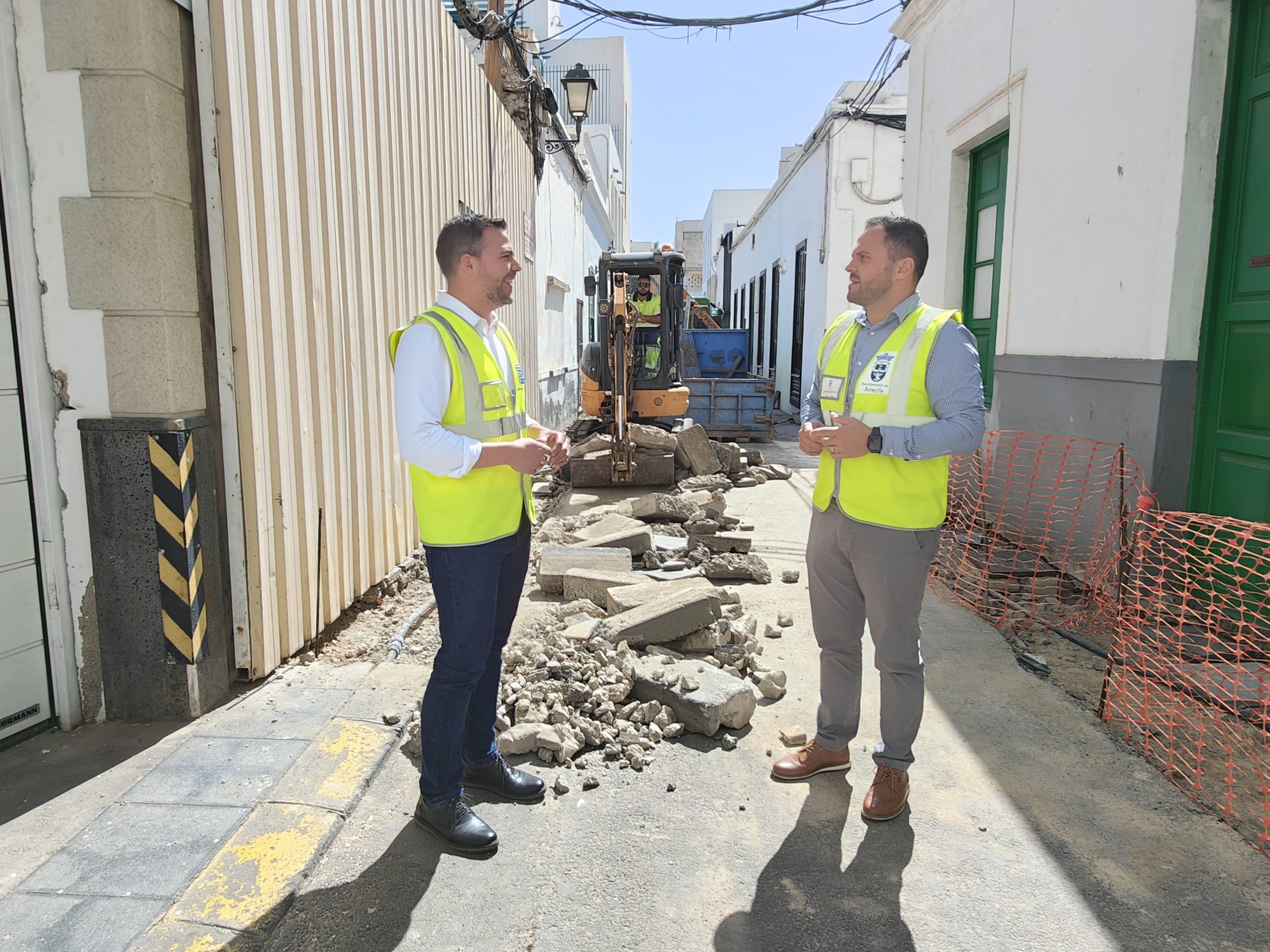 El vicepresidente y consejero de Obras Públicas, Jacobo Medina, visitó la intervención en el entorno de El Almacén junto al alcalde y titular directo de Obras, Yonathan de León