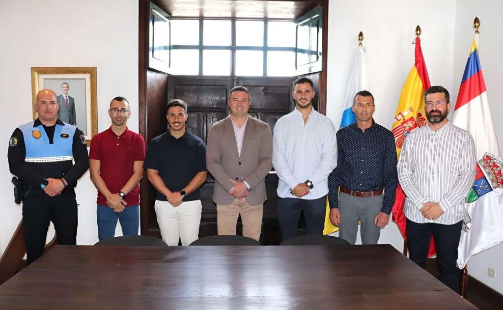 Junto al primer teniente de alcalde, Nicolás Saavedra, y al jefe de la Policía Local, Antonio Rodríguez, el alcalde felicitó