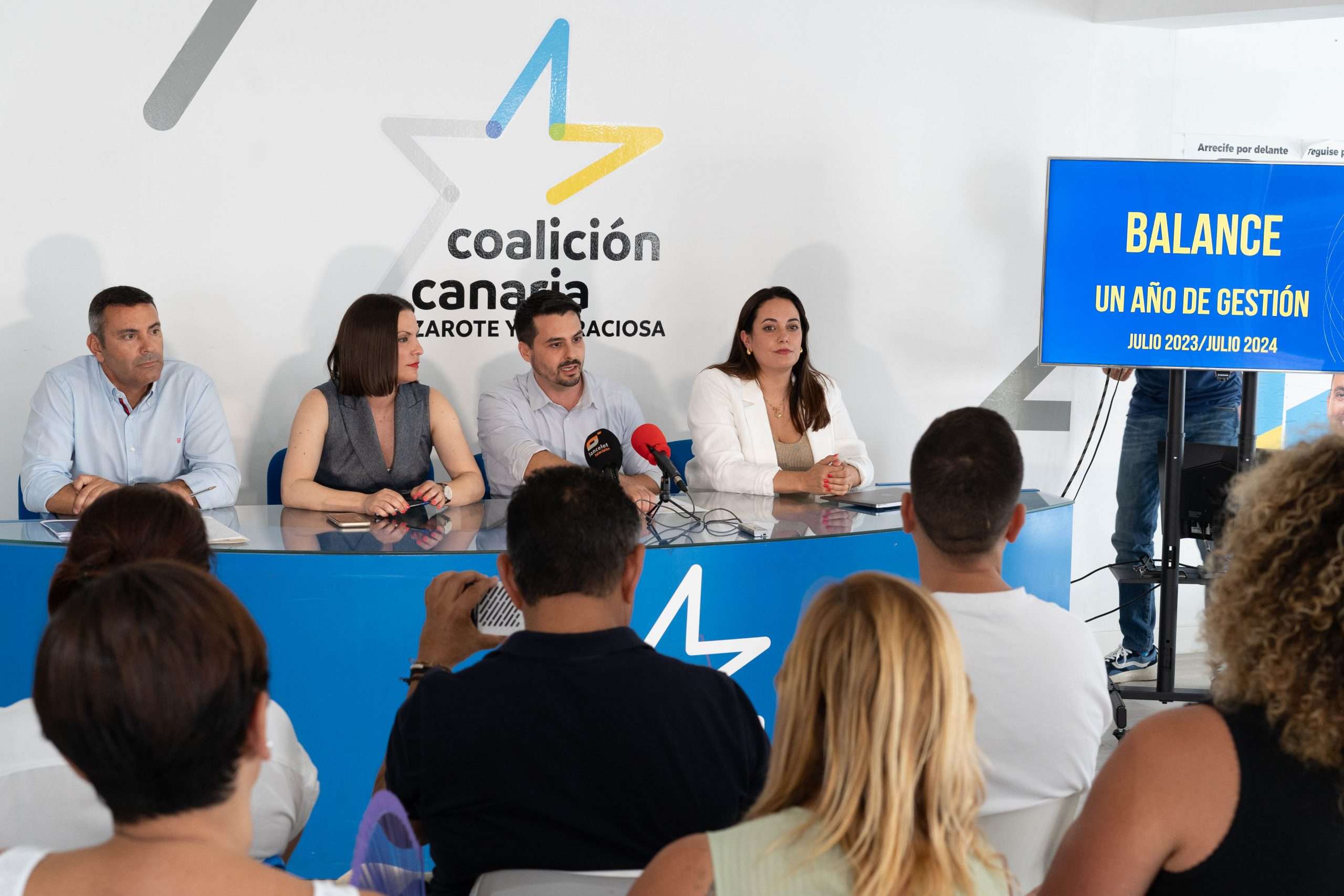 Coalición Canaria (CC) ha presentado este miécoles en rueda de prensa un detallado balance de la gestión en Lanzarote por parte del Gobierno de Canarias destacando las inversiones y proyectos ejecutados durante el último año. La presentación contó con la presencia de Migdalia Machín, secretaria insular de CC y consejera de Universidades, Ciencia e Innovación y Cultura del Ejecutivo autonómico, David Toledo Niz, secretario nacional de Organización de Coalición Canaria y presidente del Grupo Parlamentario Nacionalista, de Oswaldo Betancort, presidente del Cabildo de Lanzarote y parlamentario autonómico, y de Cristina Calero, diputada del Grupo Parlamentario Nacionalista.