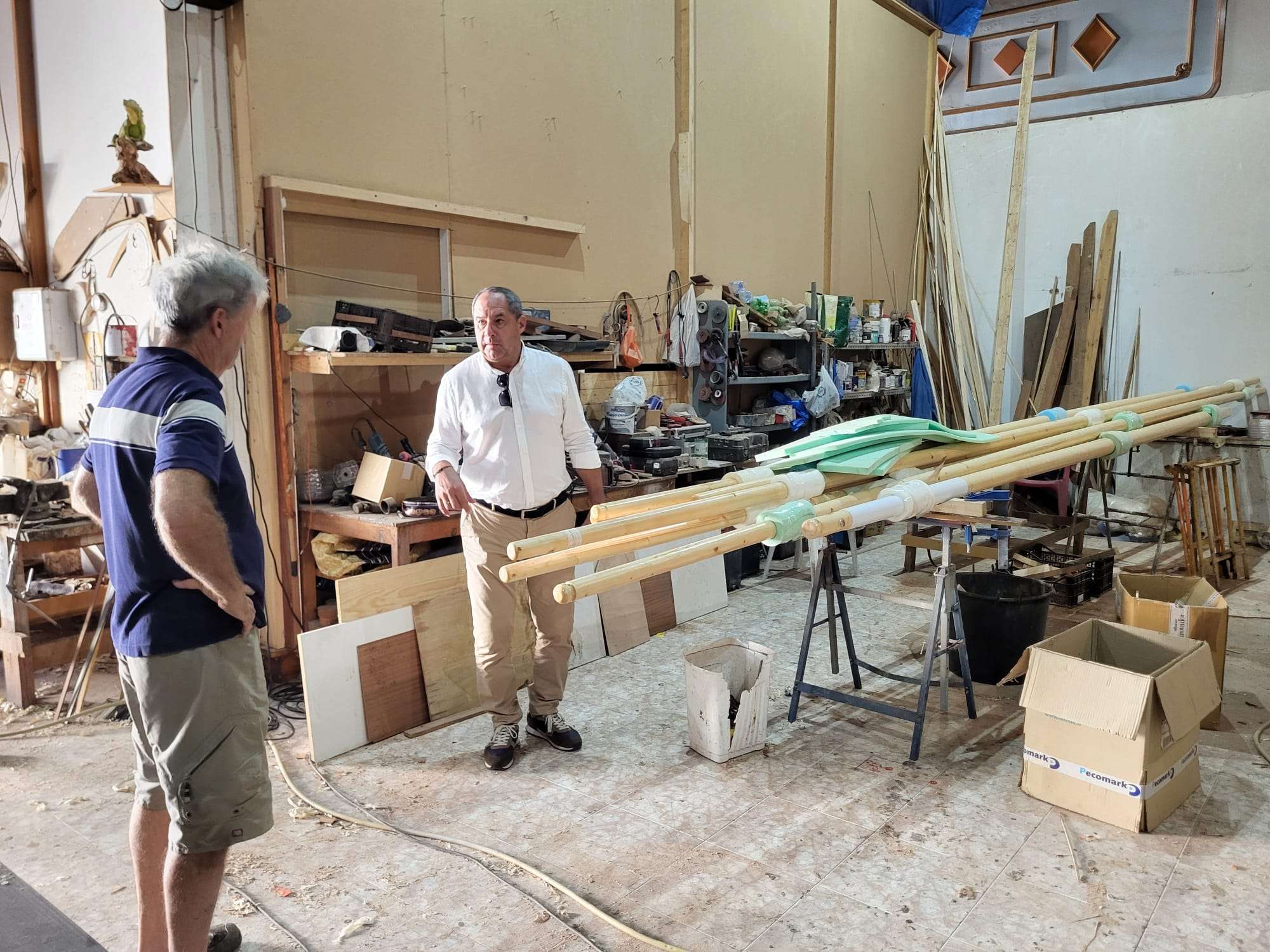 El consejero de Deportes del Cabildo de Lanzarote, Juan Monzón, visitó recientemente la carpintería de Santiago González, maestro de la madera que mantiene la tradición artesanal de Lanzarote.