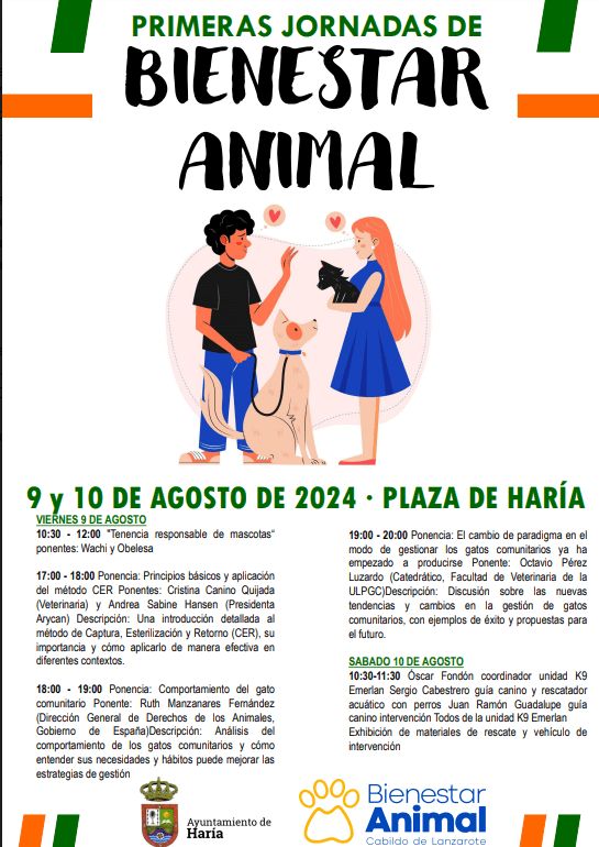 El Ayuntamiento de Haría, en colaboración con la Consejería de Bienestar Animal del Cabildo de Lanzarote, organiza las primeras Jornadas de Bienestar Animal, que se llevarán a cabo los días 9 y 10 de agosto en la Plaza de Haría. Este evento tiene como objetivo principal fomentar la tenencia responsable de mascotas y promover prácticas éticas en la gestión de las mascotas.