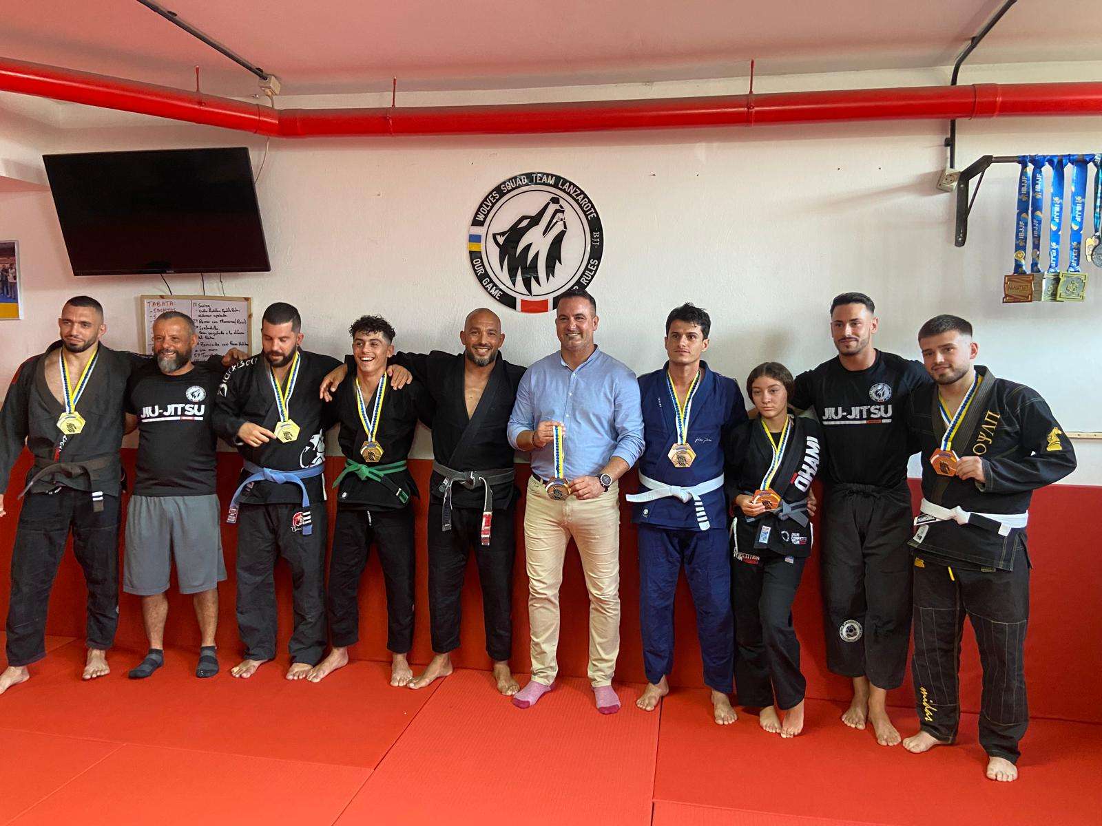 El club deportivo de artes marciales Wolves Squad, con sede en la localidad de Playa Blanca, consiguió una nueva alegría para el deporte del municipio de Yaiza, que saborea una vez más las mieles del triunfo tras la actuación de la entidad sureña en el Campeonato de Canarias de Grappling Gi (con kimono) celebrado el pasado mes de julio en la Ciudad Deportiva de Arrecife, donde los luchadores del Wolves Squad sumaron siete medallas, una por cada competidor participante, entre ellas, la presea de oro de Álvaro Araña Sosa, máxima categoría del campeonato cinturón negro.