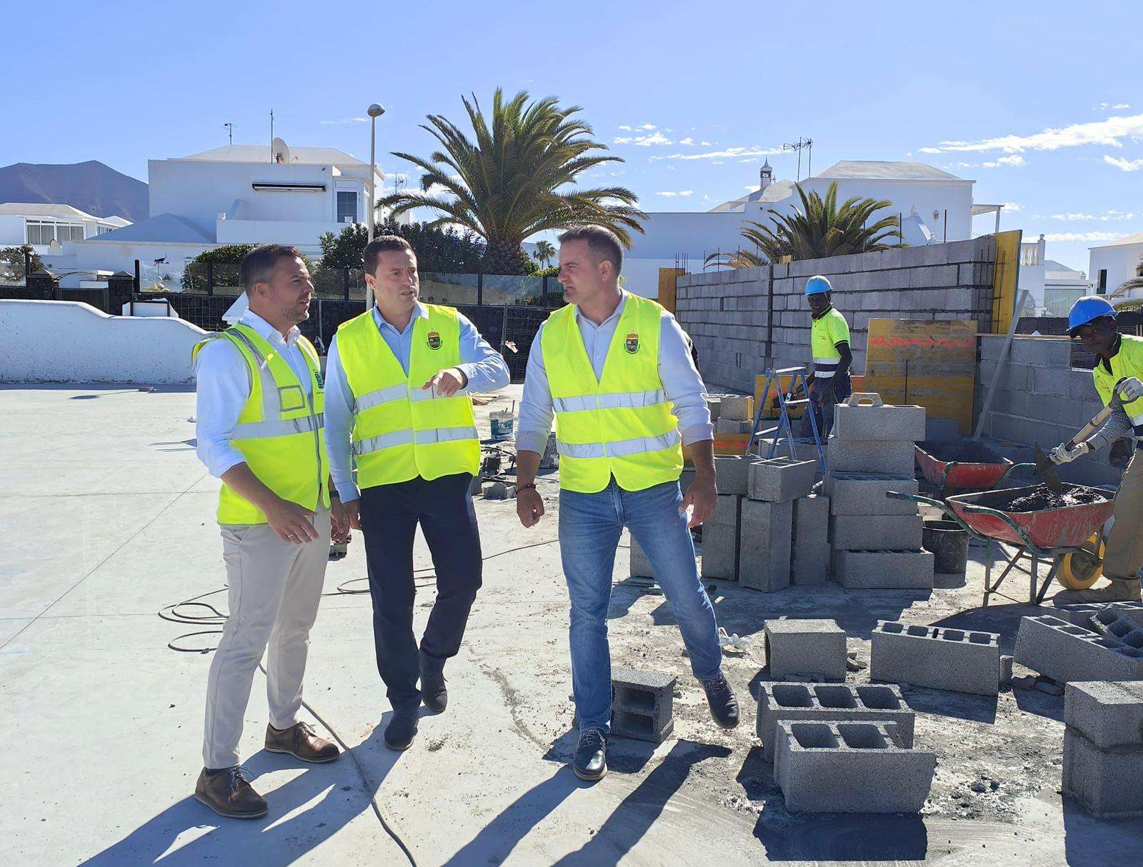 Jacobo Medina, acompañado por el alcalde de Yaiza, Oscar Noda, y el concejal de Obras Públicas, Ángel Lago, visitó este viernes la obra comprobando el desarrollo del proyecto que incluye la reforma de la cancha multiusos, la incorporación de baños y vestuarios, un carril bici, un muro perimetral, la construcción de aparcamientos tanto en la entrada norte (calle La Molina) como en la entrada sur (Avenida de Femés), y la mejora general del entorno de la parcela.