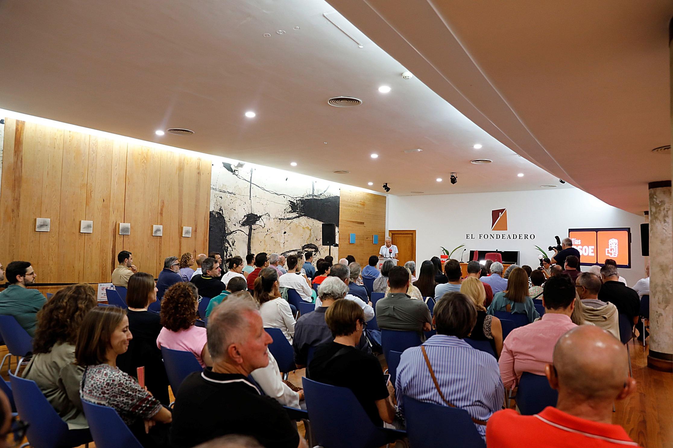 María Dolores Corujo, secretaria insular del PSOE de Lanzarote, tomó la palabra para agradecer a Armengol su intervención, recordando que poner el desarrollo turístico al servicio de las personas y garantizar su sostenibilidad en el tiempo está en el ADN del PSOE de Lanzarote y reivindicó la importancia que ha tenido para la isla el Plan Insular del 91, marcado de manera indeleble con sello socialista, al tiempo que recordaba la relevancia de seguir el camino que se comenzó en su mandato como presidenta del Cabildo. Corujo rememoró la declaración de saturación turística que llevó a cabo durante su etapa, una declaración que buscaba proteger el futuro de la isla y que, lamentablemente, ha sido frenada por el actual gobierno de derechas. “Nuestros hijos y nuestros nietos tienen el derecho de vivir en nuestra tierra”, destacó Armengol, coincidiendo con Corujo en la necesidad de garantizar las oportunidades para las generaciones futuras.