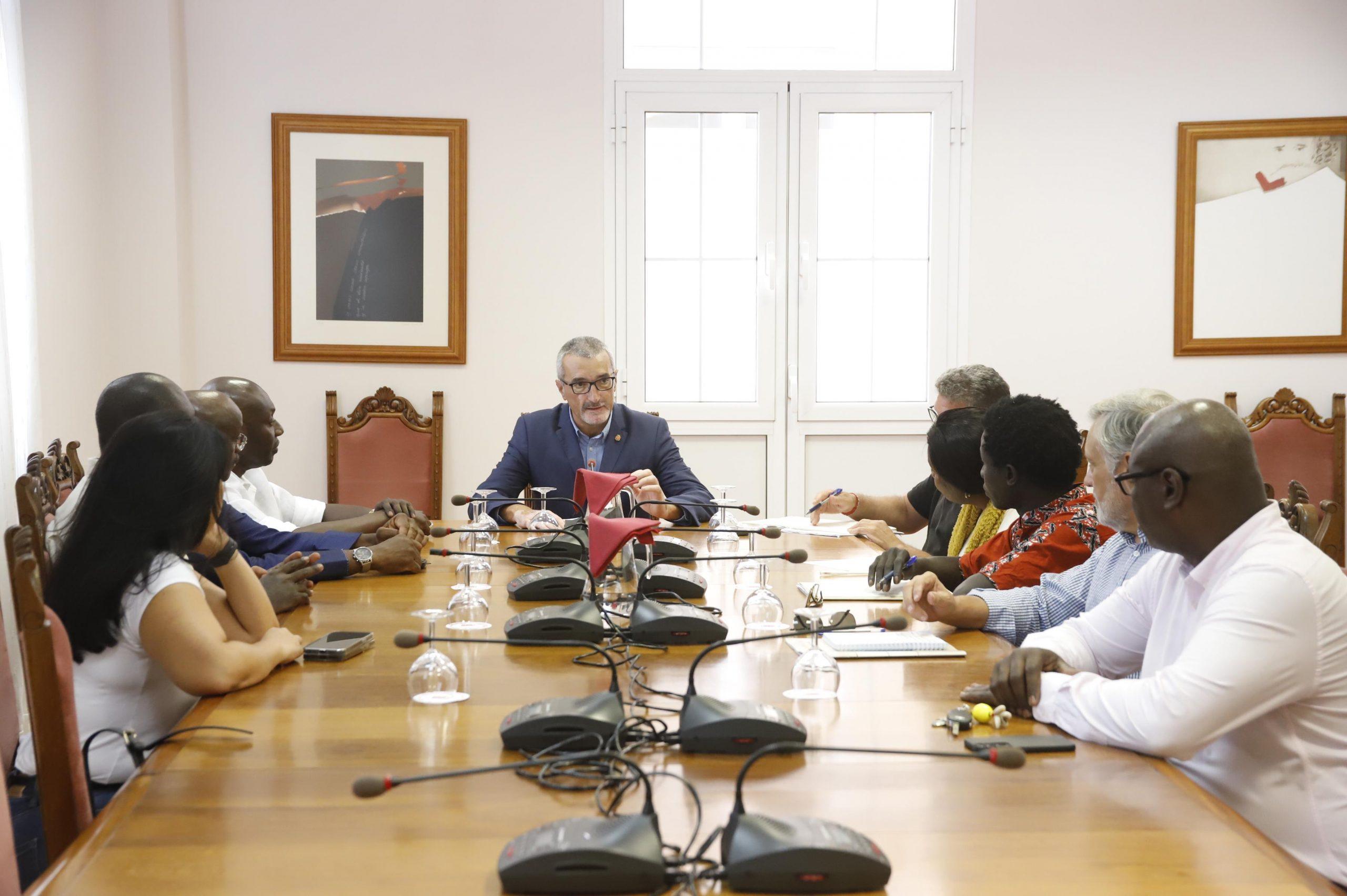 Además del consejero de Bienestar Social e Inclusión del Cabildo de Lanzarote, Marci Acuña, a la reunión asistían los representantes de las dos principales coordinadoras de asociaciones senegalesas en Cataluña y Canarias (CASC y CASAC).