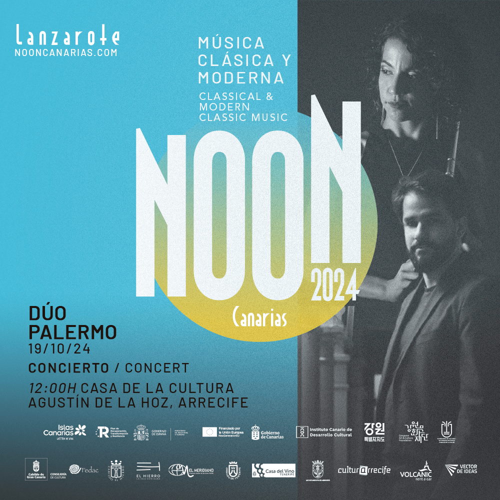 El festival de música clásica y moderna ‘Noon’, organizado por Cultura Arrecife que dirige la concejala responsable de esta área en el Ayuntamiento de la capital lanzaroteña, Abigail González, celebra este sábado 19 el segundo concierto de los programados para octubre en Arrecife a cargo del tinerfeño Dúo Palermo, formado por Elizabeth García Pérez y David Duque Infante quienes han unido su talento para crear y acercar al público un repertorio cercano y ligero.
