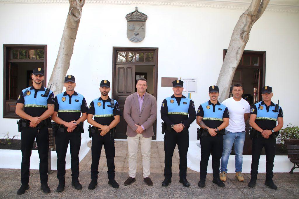 El alcalde de Yaiza, Óscar Noda, recibió este miércoles en sede consistorial a los cuatro policías locales que se han