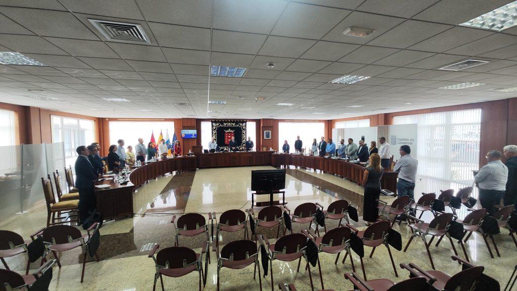 Los consejeros y consejeras que integran el plenario del Cabildo de Lanzarote han guardado este miércoles un minuto de silencio,