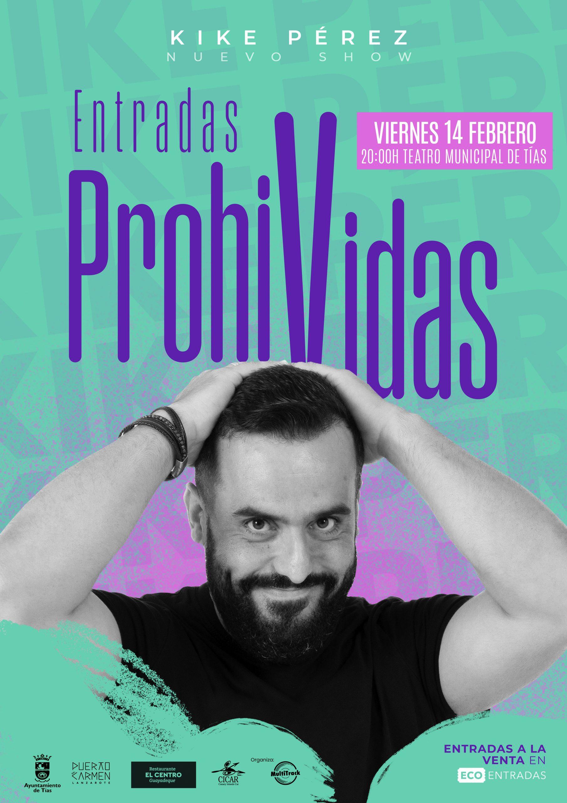 No podía ser en otro espacio escénico más que en el Teatro Municipal de Tías el lugar escogido por el popular humorista lanzaroteño Kike Pérez para estrenar con carácter absoluto su nuevo show, ‘Entradas ProhiVidas’. El espectáculo con el que comienza un nuevo año el cómico tendrá lugar el próximo día 14 de febrero, a las 20:00 horas, en el primer teatro de Canarias que acogiera hace doce años una actuación suya cuando iniciaba su carrera como artista. Las localidades ya están a la venta en la página de venta online www.ecoentradas.com