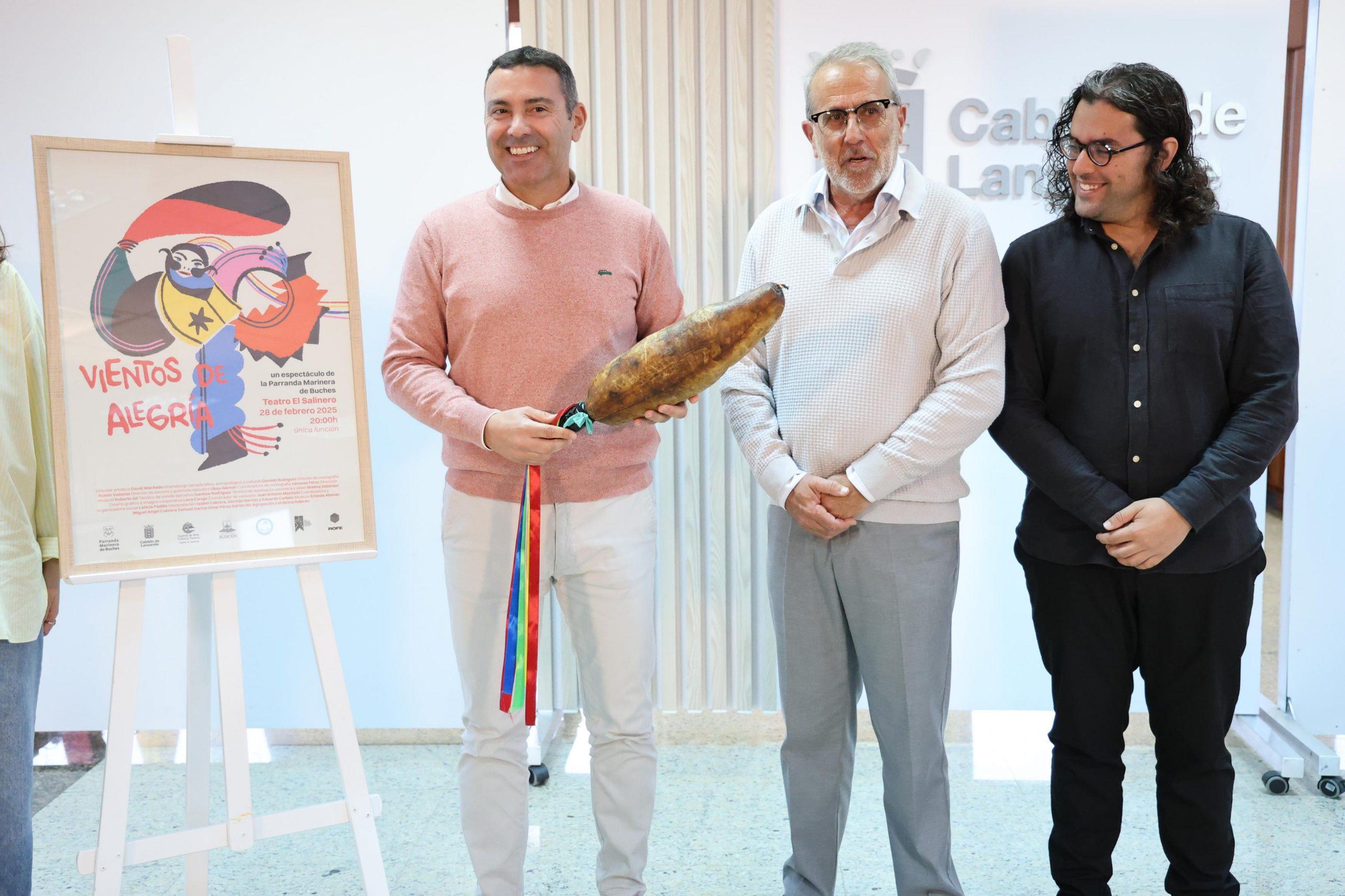 El Cabildo de Lanzarote y la Parranda Marinera de Los Buches presentaron este lunes en el Salón de Plenos de la institución, Vientos de Alegría, un espectáculo escénico que une música, danza y teatro para reivindicar la esencia del Carnaval de la isla y su profundo vínculo con el mar.
