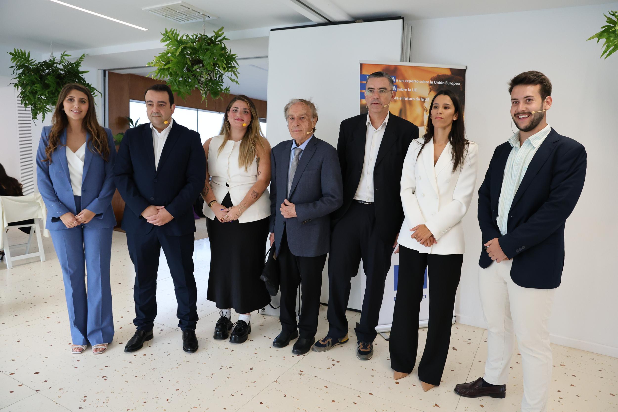 Eliana Parilla Morin, Presidenta del Consejo de Juventud de Canarias; Manuel Medina Ortega, Presidente del Consejo Canario del Movimiento Europeo; Diego Ruiz, Presidente de Equipo Europa Canarias; José Valle, Presidente de la Cámara de Comercio de Lanzarote y La Graciosa; Lucas Pérez, Director Académico del Centro de Documentación Europea de la ULPGC y María Cabrera, abogada y experta en Relaciones Internacionales.