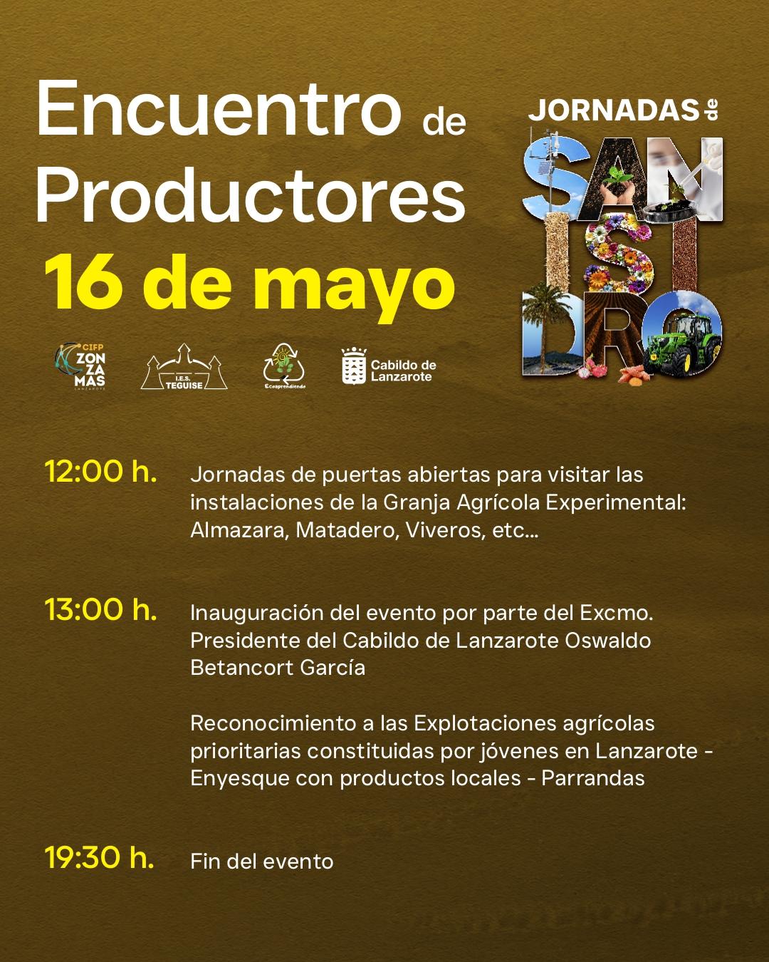 El broche de oro de las jornadas llegará el 16 de mayo con un gran Encuentro de Productores, que reunirá en la Granja Agrícola Experimental a profesionales del sector agrícola y ganadero para fomentar la cooperación, el asociacionismo y la creación de redes de colaboración. En el acto, en el que estarán presentes los miembros de la Comisión de Agricultura, Ganadería, Pesca y Soberanía Alimentaria del Parlamento de Canarias, encabezada por el consejero de Agricultura, Ganadería y Pesca del Ejecutivo autonómico, Narvay Quintero, se realizará un reconocimiento especial a los jóvenes que en estos últimos años se han incorporado al registro de Explotaciones Agrarias Prioritarias de Canarias apostando así por dedicarse profesionalmente a la agricultura y la ganadería en nuestra isla.