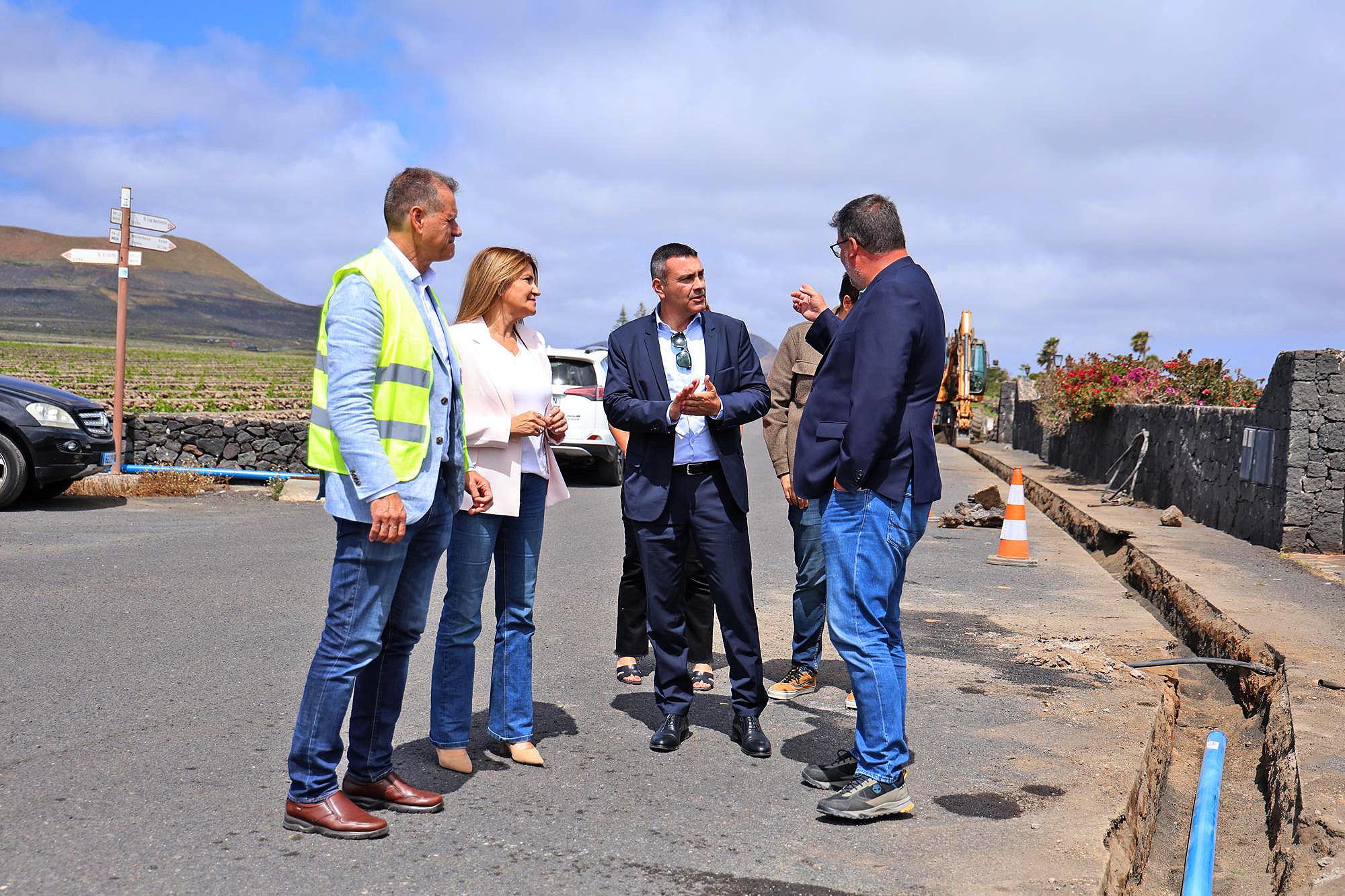 El presidente del Cabildo de Lanzarote, Oswaldo Betancort, acompañado por los consejeros Domingo Cejas (Aguas) y María Jesús Tovar (Planificación y Proyectos), ha visitado las obras hidráulicas que se desarrollan en la Montaña de Tinache (Tinajo) y en el camino El Sobaco (San Bartolomé), dentro del plan insular para la mejora del abastecimiento de agua.