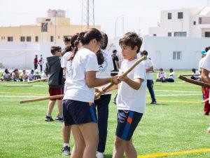 El Campo Municipal Agapito Reyes Viera de Altavista fue escenario este miércoles de una jornada especial con motivo de la clausura del proyecto educativo y cultural ‘La Lucha del Garrote, un recurso del aula’. Una iniciativa impulsada por las áreas de Educación y Cultura del Ayuntamiento de Arrecife, bajo la coordinación de la concejala Abigail González, que desde el mes de marzo ha involucrado a cerca de 600 escolares de 5º y 6º de Primaria de diez centros del municipio.