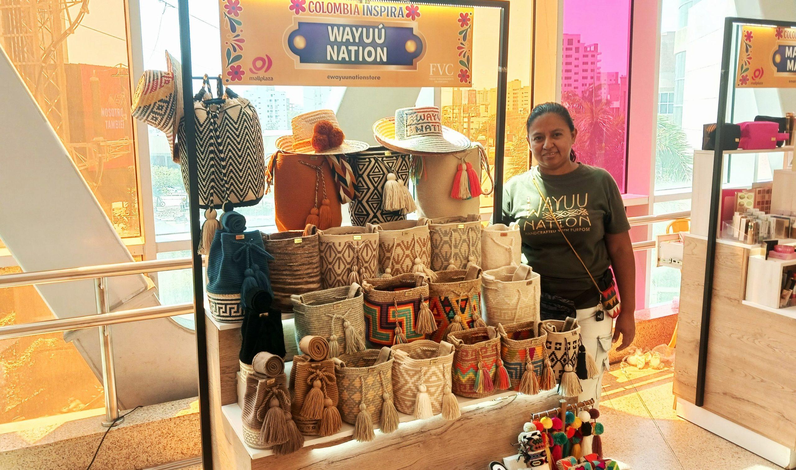 Por casualidad, encontré un atractivo stand de venta de artesanías en el centro comercial Buenavista de Barranquilla,  se trata del pequeño puesto ‘Wayuú Nation Store’. Me llamó la atención no solo por la calidad, colorido y exhibición de sus productos, todos hechos a mano, mochilas y sombreros, entre otros, sino por la imagen y seña de identidad que proyecta este emprendimiento con fines sociales que mezcla el nombre de la comunidad indígena Wayuú, asentada en el departamento de La Guajira, norte de Colombia, con su válida estrategia de marketing.