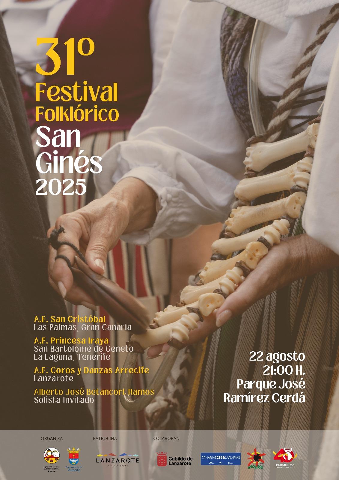 El Parque José Ramírez Cerdá de Arrecife acogerá a partir de las 21 horas de hoy viernes el XXXI Festival Folklórico de San Ginés que contará con las actuaciones de las agrupaciones San Cristóbal de Gran Canaria, Princesa Iraya de Tenerife y Coros y Danzas de Arrecife, además del solista invitado José Betancort Ramos.
