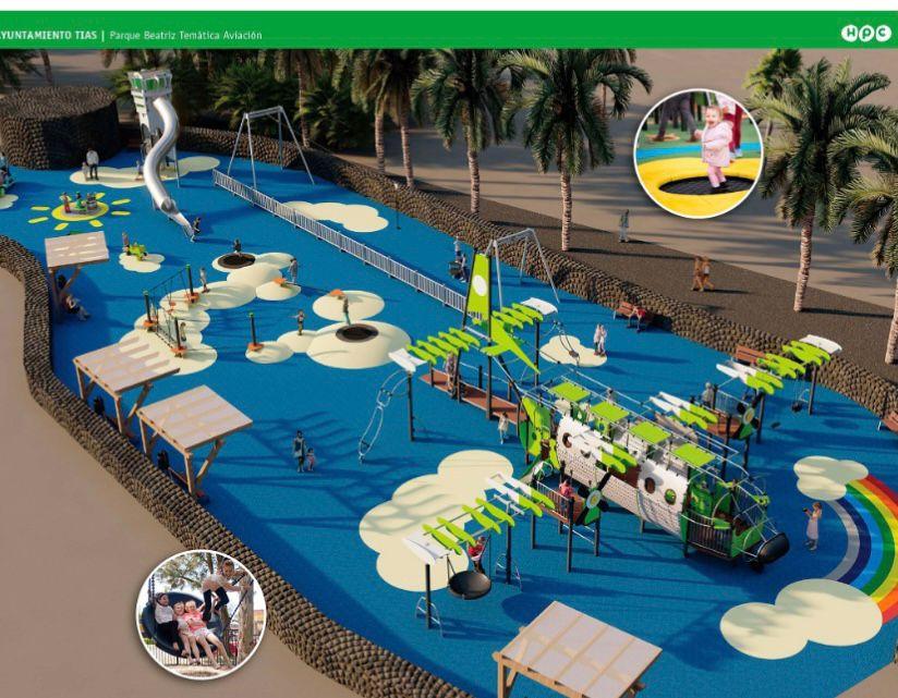 Según ha explicado el portavoz de NC–bc en Tías, Juan de León, el proyecto plantea ampliar el actual espacio de 257 m² hasta más de 1.076 m², incorporando una tematización aeronáutica con un avión y una torre de control de seis metros de altura, lo que —según sus palabras— generaría un fuerte impacto visual en la avenida. Además, calificó la propuesta de “anacrónica”, al no ajustarse a los modelos europeos de parques inclusivos y adaptados a la diversidad funcional.