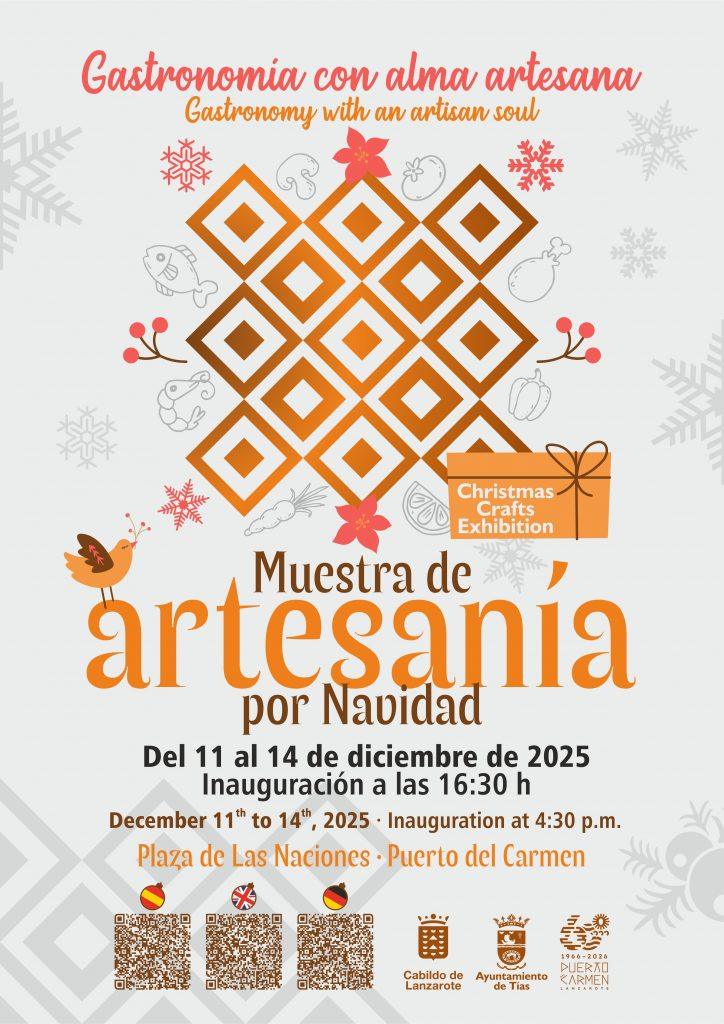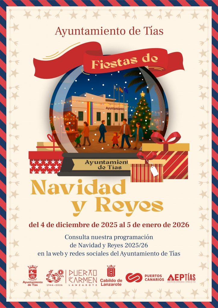 El Ayuntamiento de Tías presentó hoy el Programa de Fiestas de Navidad y Reyes 2025-2026, que se celebrará del 4 de diciembre de 2025 al 5 de enero de 2026, así como la III Muestra de Artesanía por Navidad, bajo el lema “Gastronomía con alma artesana”, que tendrá lugar del 11 al 14 de diciembre en la Plaza de Las Naciones, en Puerto del Carmen.
