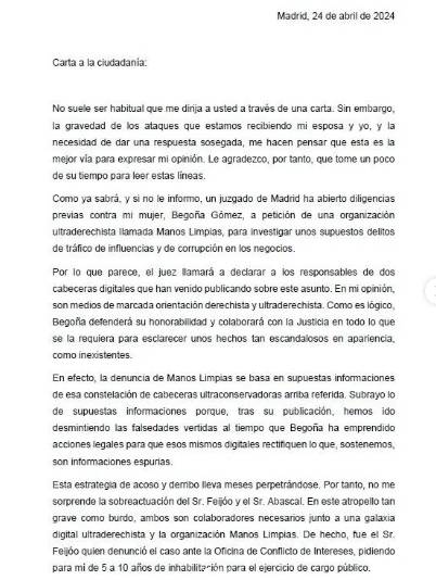 Pedro Sánchez reflexiona sobre su continuidad como presidente del Gobierno tras la denuncia contra su esposa